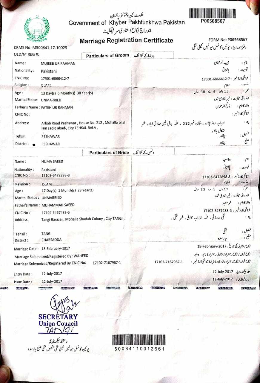 APP | huma saeed | I huma Saeed wife of late Mujeeb Ur Rehman. I am married in 2017 to Mujeeb Ur rehman whose house is in bilal lane sadeeq abad university town comety house no 212 tehkal bala peshawar. My husband has died on 14 july 2020. i have a child of two and half years. I have my two in laws that is sisters of my husband Gul e Rana and Sarwat living in that house. After a month i have decided to go to my father house. But they resist me and force me to stay. However i still managed to come to my father house. Now i have belongings in that house which i am afraid that they will harm or intend to occupy them. i want justice to return safely my belongings and seal my room there as that is my and my child right. important documents are attached. | 2020-08-22 12:59:35 |