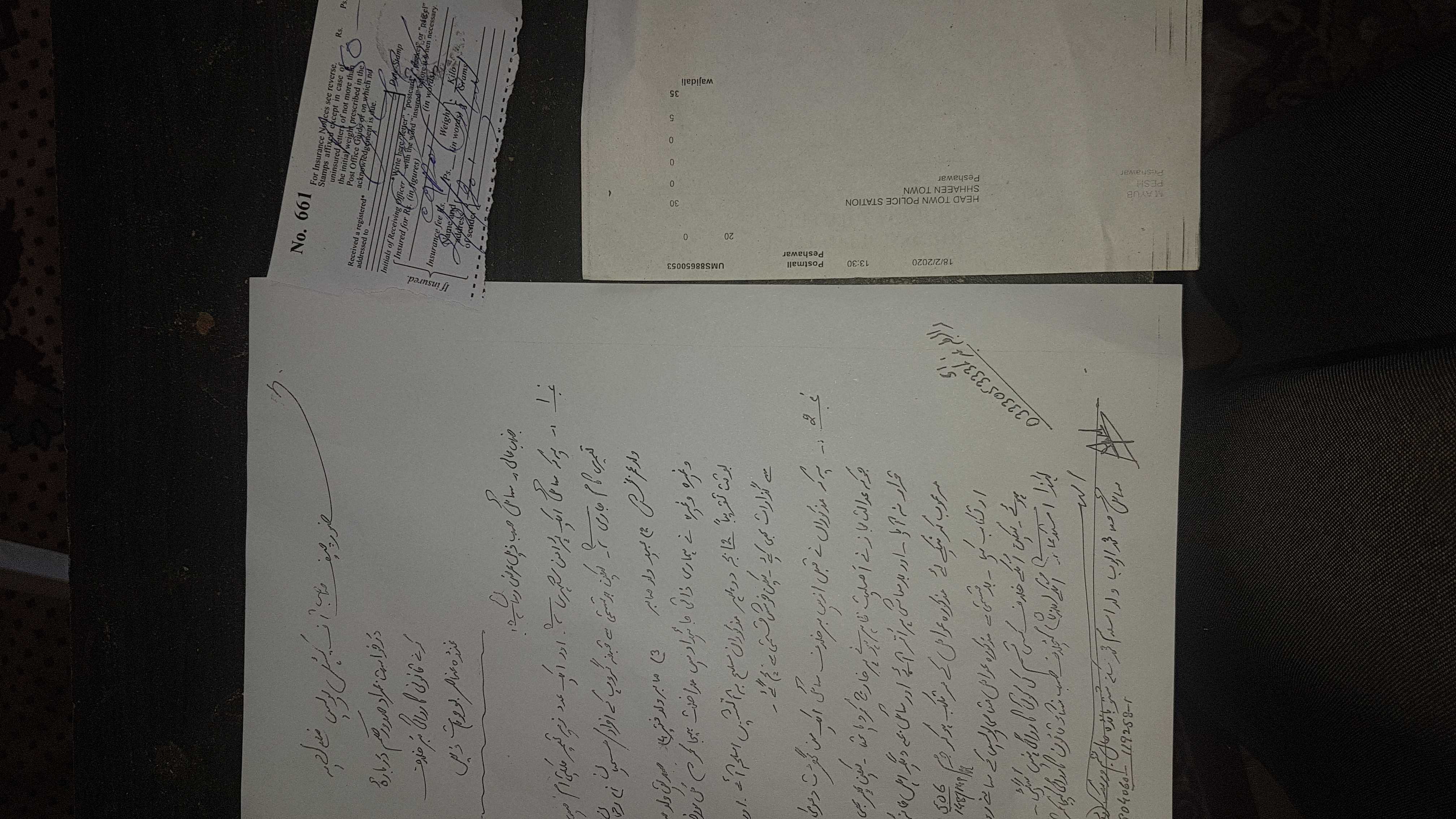 APP | Muhammad Ayub | Hallo Dear IG,SSP PESHAWAR . I respectable Pakistani citizen. I am constructing a resdencial building which almost completed on my old house in University town which is registered on my name since 1989. I was residing in this from the same period. A kabza group is threatening and even attacked me with knife in front of police. I complained several time to the town police station .But they have not taken proper action till know. the request (attached) for FIR send through registry. I request urgent investigations and action. even I have video of incidence and could be provided if asked. Muhammad Ayub contact No. 03330533351 | 2020-02-23 13:16:58 |